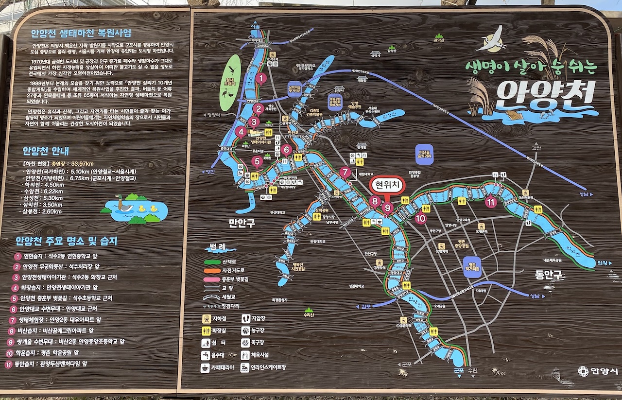 위 사진은 쌍개울에 있는 안양천 표지판 사진이다. 직접 찍었다. <현위치>가 쌍개울.